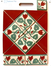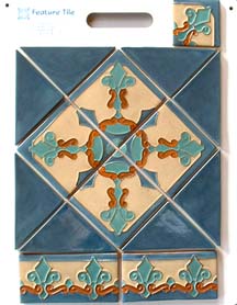 The Arts & Crafts Sets are designed so that the liners coordinate with the 8½" tile center designs. These tiles work especially well in a fireplace surround.